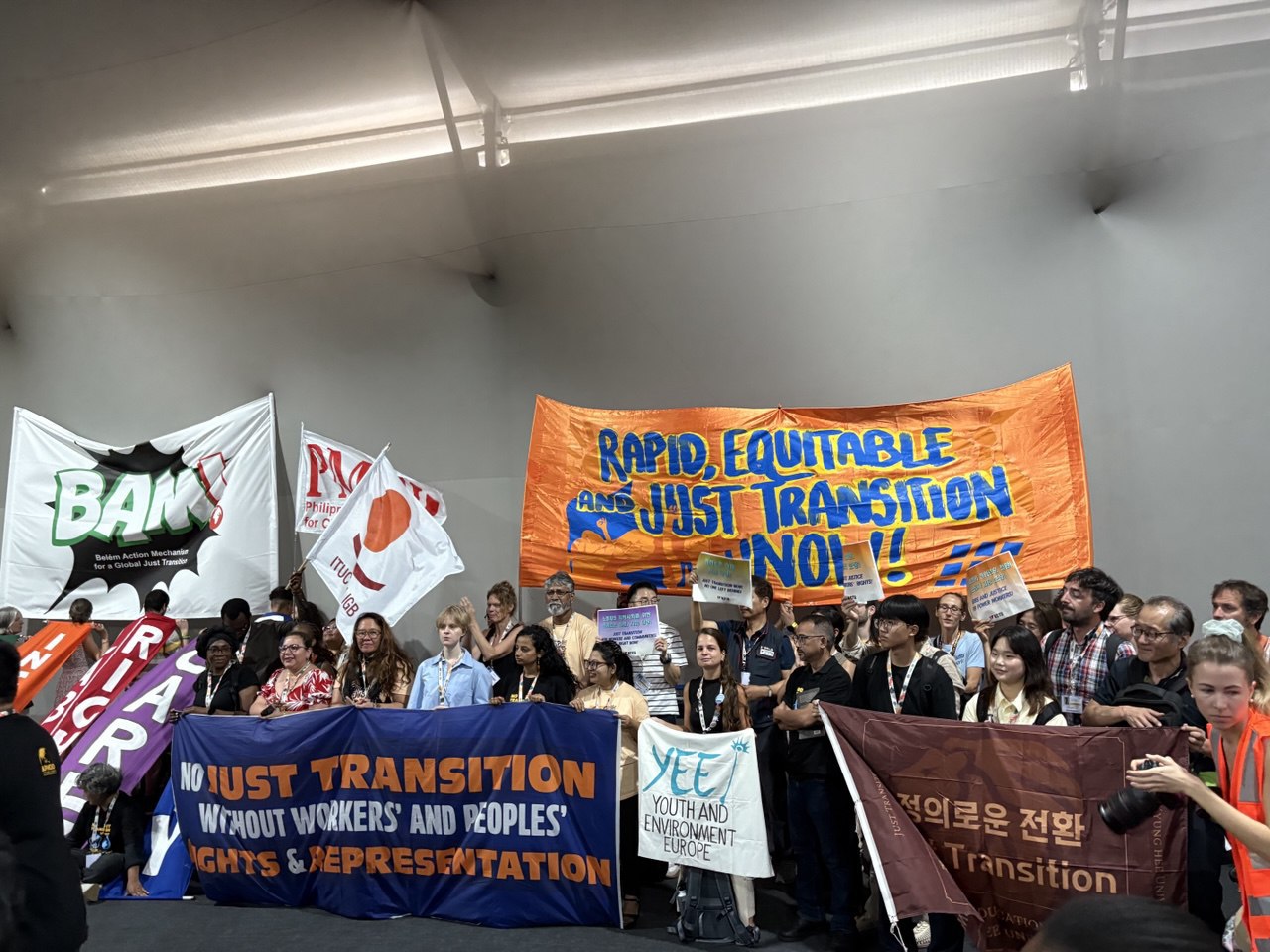 * 회의장에서 정의로운 전환 메커니즘 수립을 요구하는 시민사회 단체들의 시위